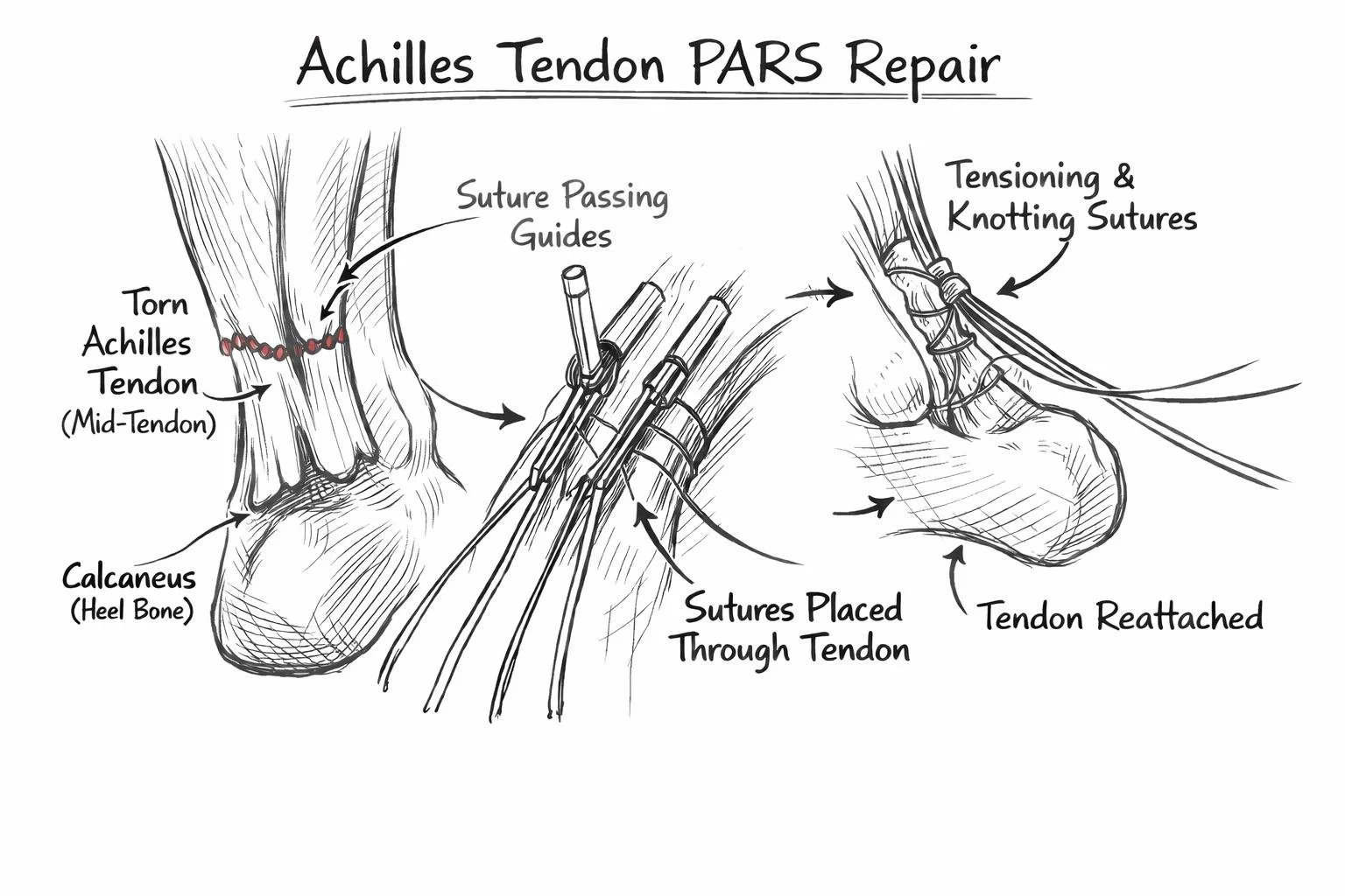 Surgical repair reconnects the torn tendon, helping it heal at the correct length and strength. While surgery isn’t right for everyone, it can lower the risk of re-rupture and long-term weakness in some cases.